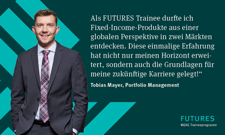 Werde Teil eines internationalen Netzwerks bei MEAG, dem Vermögensmanager der Munich Re Gruppe! Mit rund 850 Mitarbeiterinnen und Mitarbeitern weltweit sind wir in Europa, Nordamerika und Asien aktiv und verwalten über 300 Milliarden Euro in Immobilien, Aktien, Renten und alternativen Investments. Als einer der führenden Asset Manager Europas hast Du bei uns die Chance, die Finanzwelt mitzugestalten und in den globalen Kapitalmärkten erfolgreich mitzuwirken.