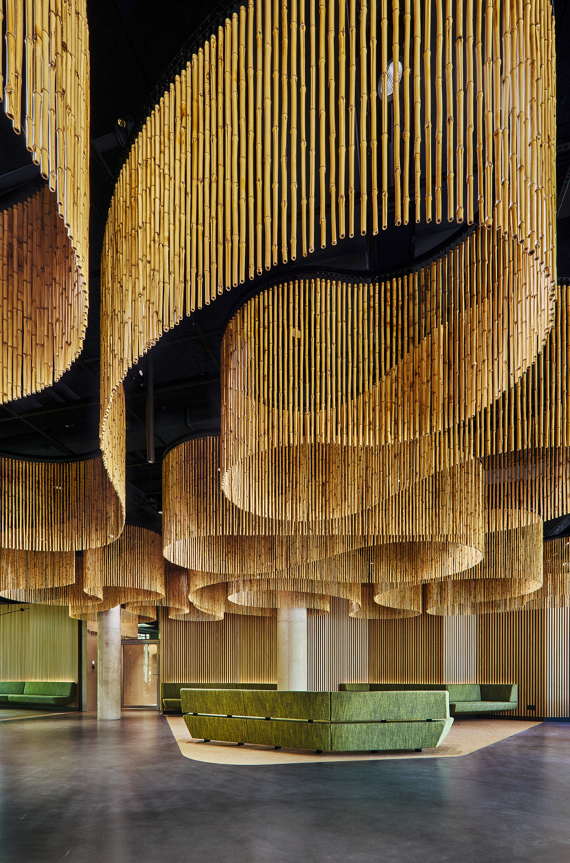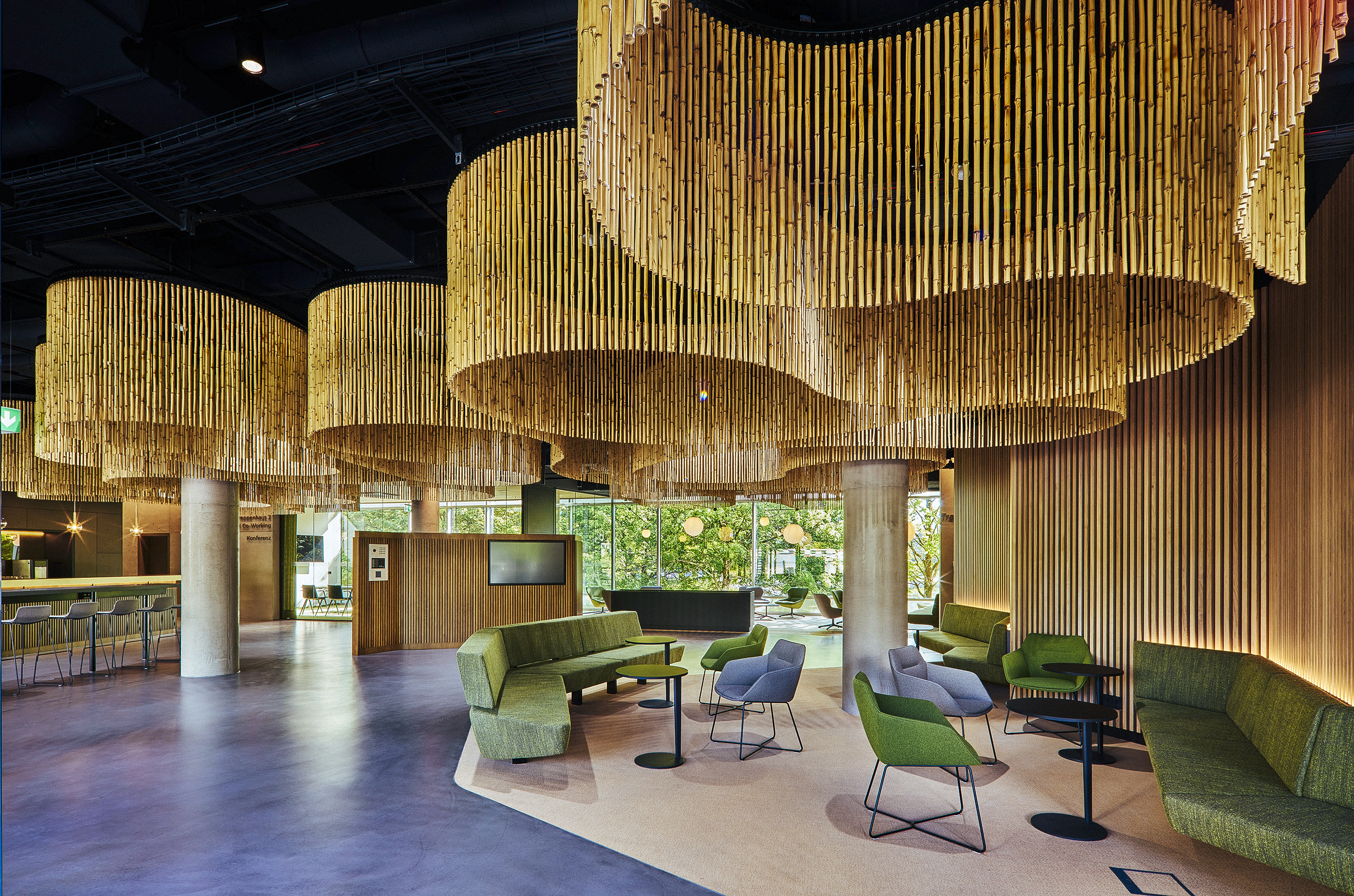 Im Co-Working-Bereich, der ebenfalls für alle Mieterinnen und Mieter nutzbar ist, werden separierte Kommunikationsbereiche und Treffpunkte angeboten. Schallgedämmte Work-Cabins für eine oder zwei Personen ermöglichen ungestörte Telefonate bzw. Mini-Besprechungen. Die Aktivitätsinseln können durch Vorhänge vom umliegenden Raum abgetrennt werden, ohne vollkommen abgeschirmt zu sein.