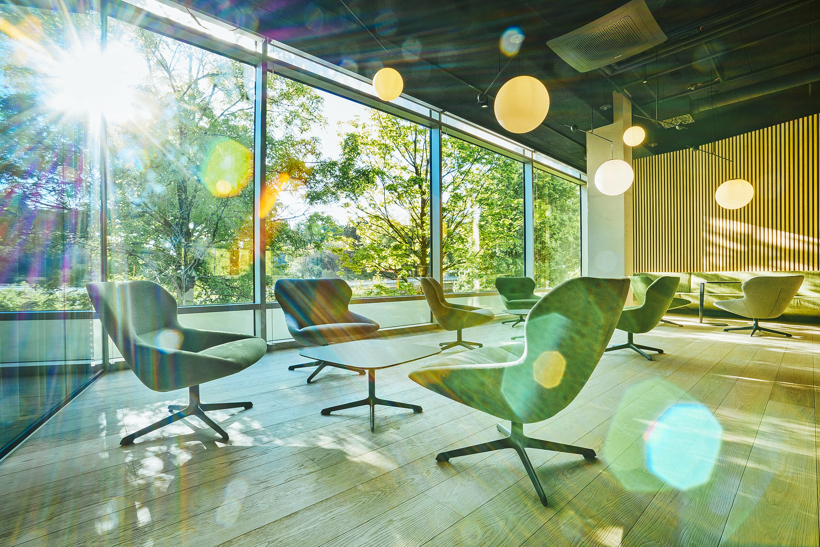 Die fünf Etagen des attraktiven Bürohauses bieten Mietern eine moderne Innenausstattung mit vielen Annehmlichkeiten. Sei es der einladende Eingangsbereich mit Möglichkeiten zum Austausch oder die hauseigene Kantine. Die modernen Büroflächen ermöglichen komfotables Arbeiten mit Wohlfühlqualität - und der vor der Haustür gelegene See lädt zu Auszeiten im Grünen ein.